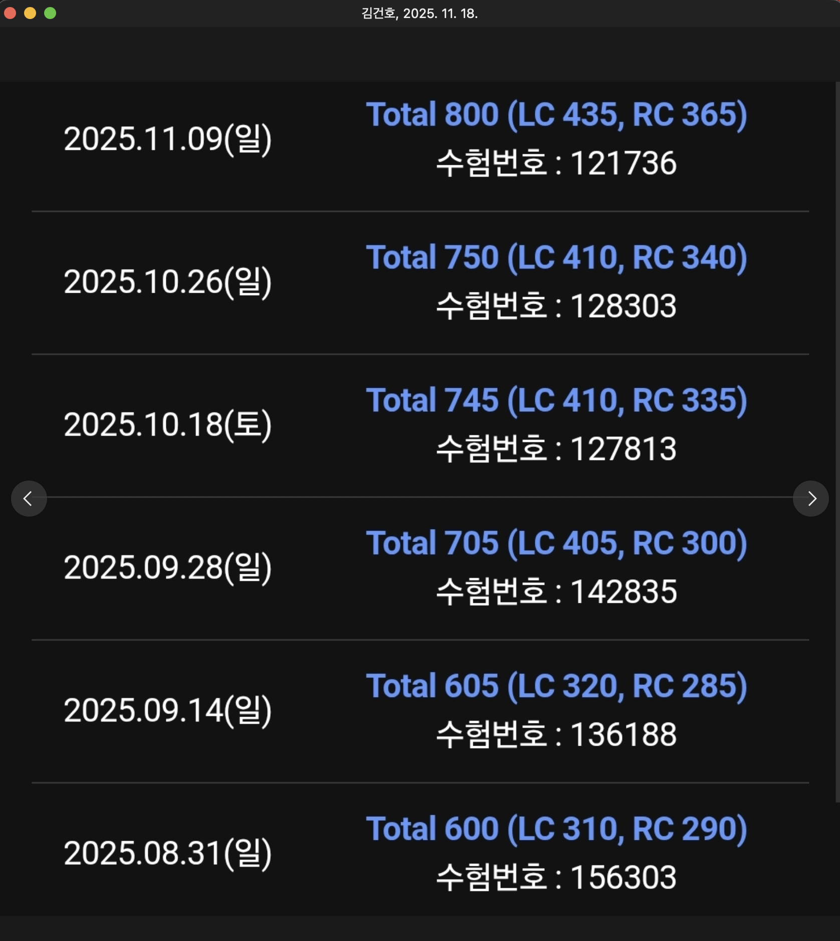 1개월(2025년 10월 1달 수강) 하시고 나온 성적표입니다.